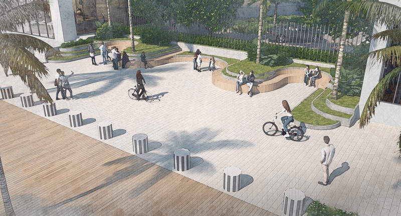Public enhancements: Expanded waterfront sidewalk (“Island Walk”), 60‑ft view corridors, green civic plazas and recreational amenities for residents and visitors.