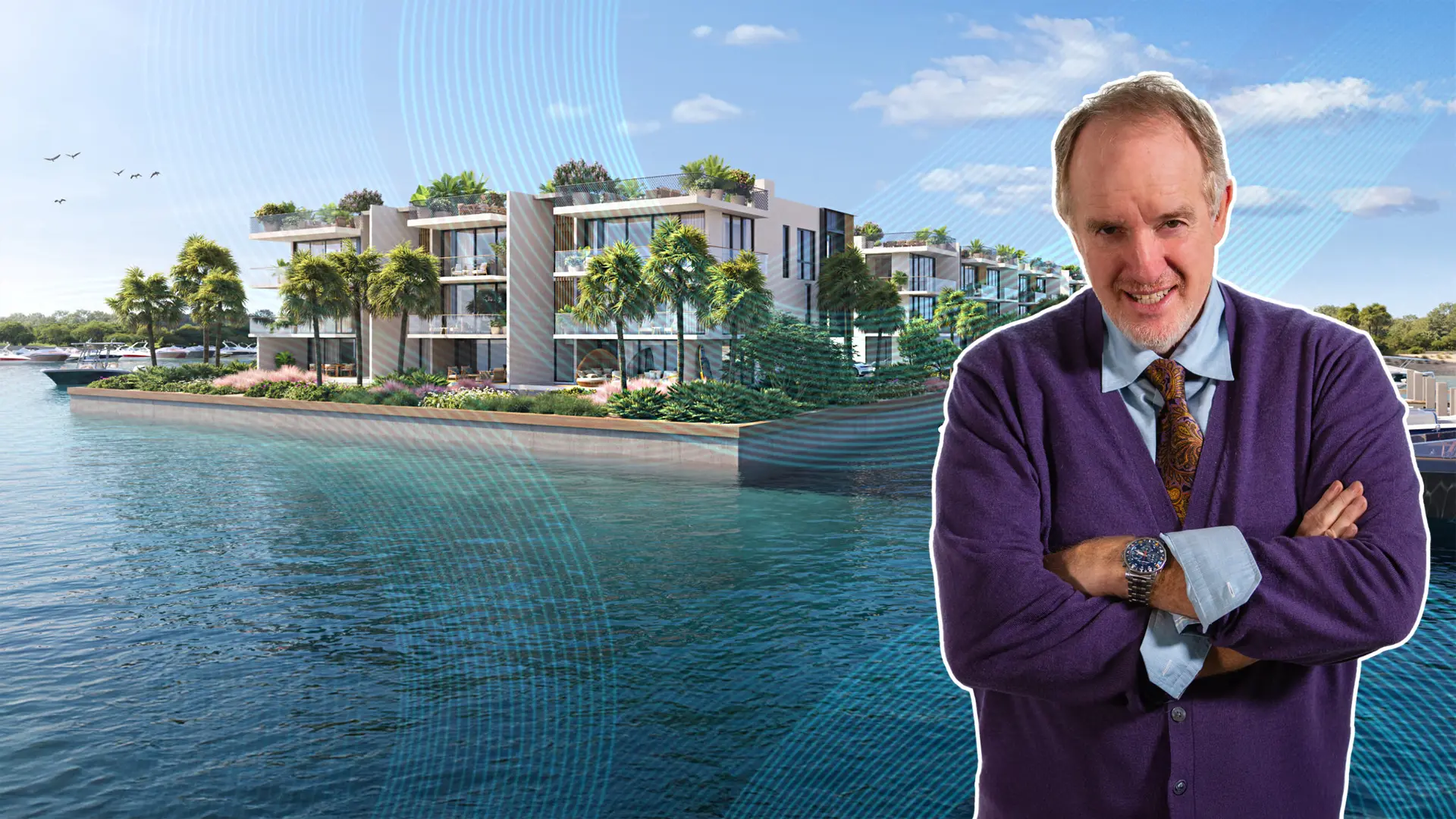 Each residence is designed to maximize water views, featuring floor-to-ceiling windows, expansive terraces, rooftop decks, private elevators, and garage parking. The community is pet-friendly and includes 13 private boat slips accommodating vessels up to 60 feet.